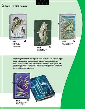 Guy Harvey 右圖是 Guy Harvey 作品主題機,2005 年 (此為第二版,第一版有四款,於 2002 - 2003 年發行)。 Guy Harvey 是一個獨特的藝術家、科學家、潛水員、釣魚高手、生態保育者與探險家。他於 1955 年 9 月 16 日出生於德國,幼年隨父親移居牙買加,後來在蘇格蘭求學並獲得很高的成就,然後他回到牙買加並在西印度大學 (University of West Indies) 取得博士學位。 Guy Harvey 從小就對於海洋生物抱有濃厚的興趣,他大部份的時間都和父親一起釣魚、潛水。然後,他開始通過自己的畫筆來描繪各種不同的他觀察到的魚類。1985 年他爲海明威的名作『老人與海』畫了 44 幅插圖並且將這一系列鋼筆畫在牙買加展出,得到了很高評價。 2002 年開始,他的作品陸續為 Zippo 採用並獲得一致的讚賞與好評。 |