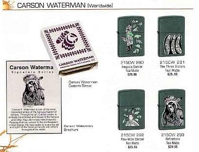 Carson Waterman Carson Waterman 作品主題機,2003 年 Carson Waterman 是美國的印弟安歷史文化學者和著名畫家,專門研究美國東北部的希尼卡 (Seneca) 和伊洛廓等印弟安民族,以畫表達和保存日漸消失的美洲原住民文化。 Zippo 以比較罕用的鴨綠色消光漆運用於這個系列,將畫中人物再次帶入充滿大自然色彩的原野和叢林。 |