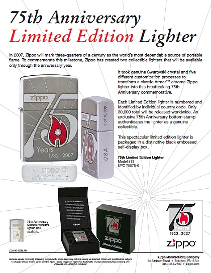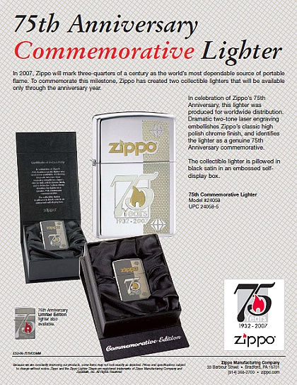 | Zippo 創業 75 週年紀念打火機 Model #24058 | |