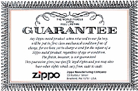 Lifetime Guarantee (終生免費保固) 不問故障原因,不論出廠年份,不需任何書面,絕對免費維修 全世界幾乎沒有任何企業敢對消費者許下這種承諾,只有 Zippo 做得到 |