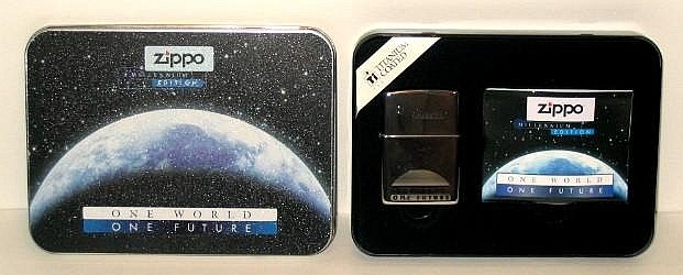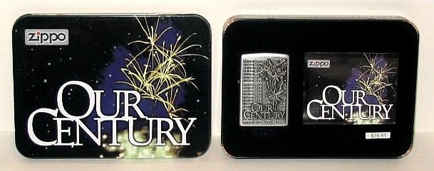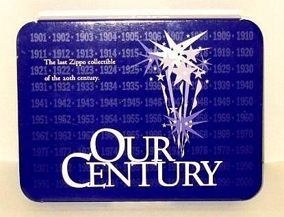 機身以慶祝千禧年的煙火為圖案,背景用 1901 ~ 2000 共 100 個數字來代表 20 世紀的 100 年份,包裝上的一行印刷文字:「The last Zippo collectible of the 20th century.」(20 世紀最後一款 Zippo 珍藏版),名符其實。 |