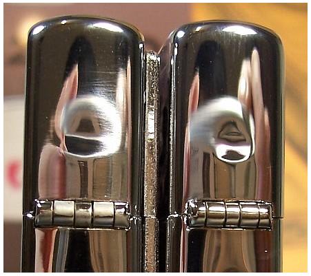 µ±Á媺²Ó·LÅÜ¤Æ ¡@¡@Zippo ¥´¤õ¾÷°¼±ªº¤¸`»ÇÁå¡A¦Û 2005 ¦~ 2 ¤ë°_¦³¤Ø¤o¤Wªº²Ó·L§ïÅÜ¡C¨ä§ïÅÜ´T«×«D±`¤p¡A¹ï¤@¯ë¨Ï¥ÎªÌ¨S¦³¥ô¦ó¼vÅT¡A¦ý¹ï¸ê²`¦¬Âê̦Ө¥¡A¥i¥H¦¹§@¬°¯u°°¿ëÃѪº¤@Ó¯¦±K¨Ì¾Ú¡C ¡@¡@¦Û 2005 ¦~ 2 ¤ë°_¡A©Ò¦³¥X¼tªº Zippo¡A¨äµ±ÁåÁ`¼e«×·L´TÁYµu¡A¦P®É§â»ÇÁåÀô¤§¤G¡B¥|Àô²¤·L¥[¼e¡A¬Û¹ïªº§â¤@¡B¤T¡B¤Àô¼e«×·L´TÁYµu¡C ¡@¡@½Ð¬Ý¦p¥k¹Ï©Ò¥Ü¡A¥E¬Ý¤§¤U¦ü¥G¨SÔ£¤£¦P¡A¦ý¥J²Ó¤@¬Ý¡A§A¤@©w¥i¥H¤À¿ë¨ä¤¤»ÇÁåÀô¼e«×ªº®t²§¡C³o¬O¤@¶µ Zippo ¯u°°Å²©wªº¤¤¯Å±K§Þ¡A¤p§Ì´N¤£¦A¥t¥~§â¥¦¦C¤J ¯u°°Å²©w¡A¤j®a§Ö§â¤âÀYªº Zippo ®³¥X¨Ó¬Ý¥J²Ó¡B½m²´¤O¡C |